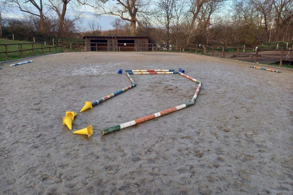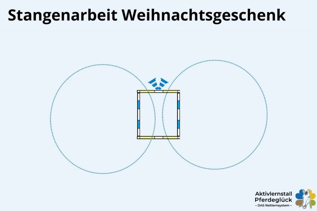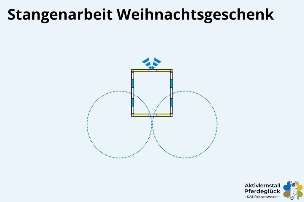 ✔️ auf gebogener Linie über das Weihnachtsgeschenk (Achtung bei den Pylonen, ich habe tatsächlich Pferde erlebt, die hier bei den ersten Versuchen etwas guckig sind)