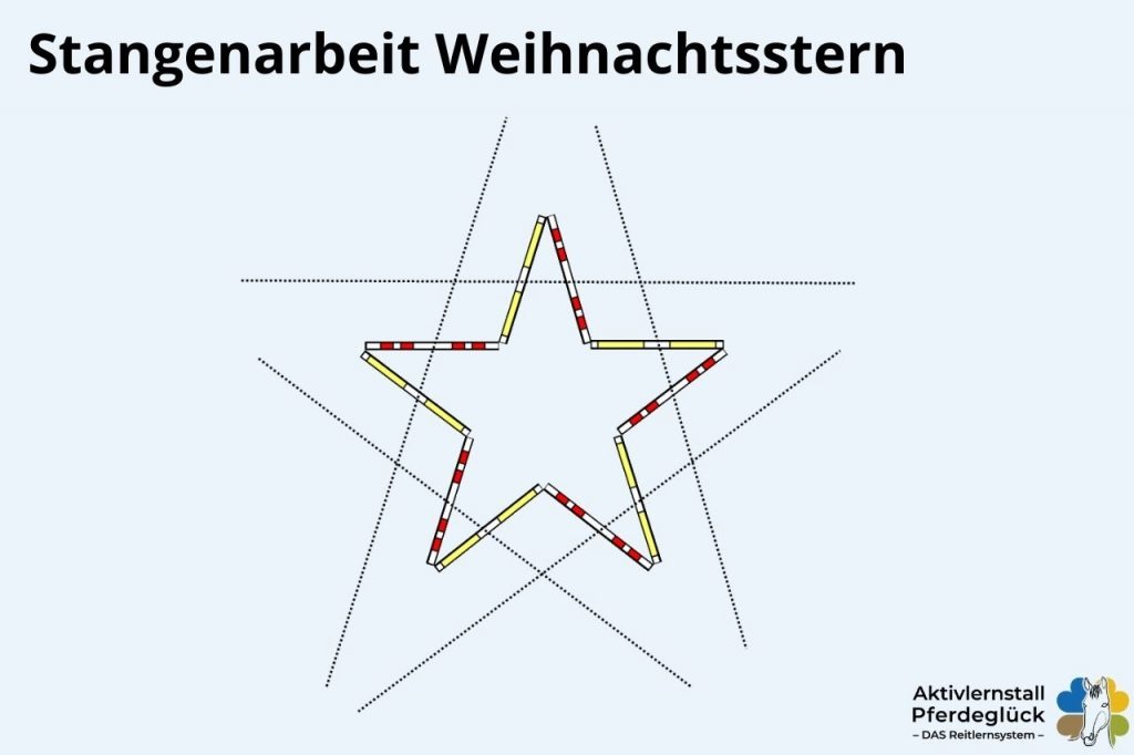 ✔️ auf geraden Linien über die Sternspitzen (je nachdem, wo du langreitest, musst du dein Pferd etwas mehr aufnehmen oder etwas zulegen)